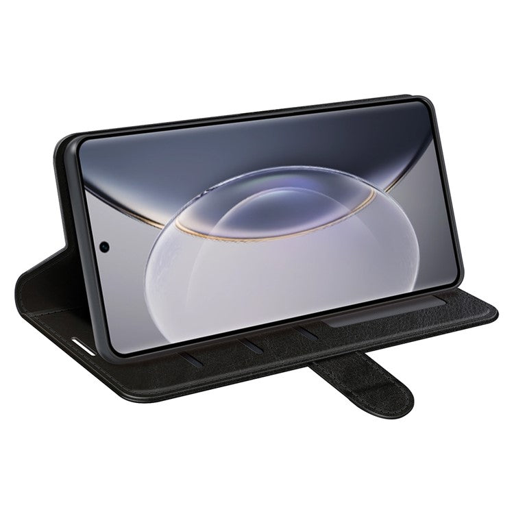 For vivo X90 Pro 5G Drop Protection Crazy Horse Texture Flip Stand Phone Case PU Leather+TPU Phone Wallet Cover - Black