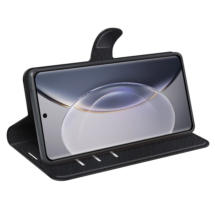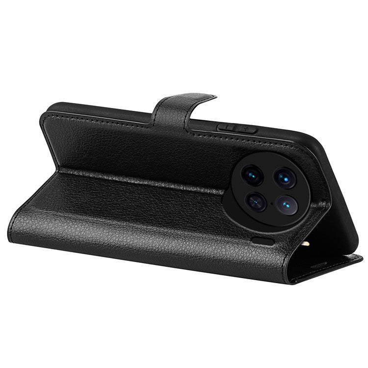 For vivo X90 Pro 5G Full Protection Flip Phone Case Anti-scratch Litchi Texture PU Leather Stand Wallet Phone Cover - Black