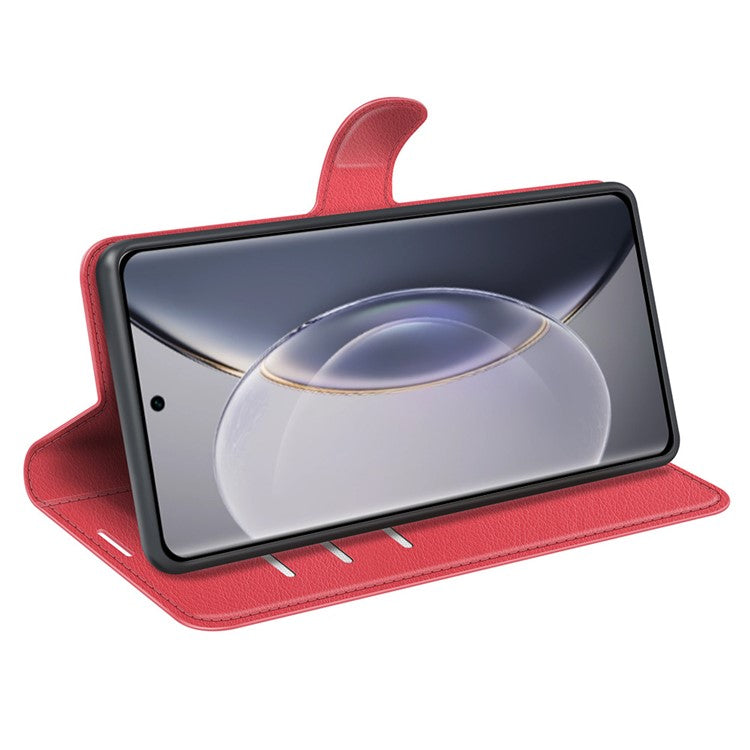 For vivo X90 Pro 5G Full Protection Flip Phone Case Anti-scratch Litchi Texture PU Leather Stand Wallet Phone Cover - Red
