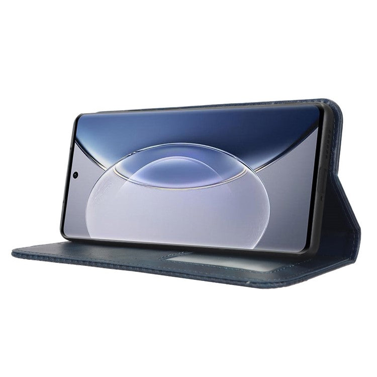 For vivo X90 Pro 5G PU Leather Phone Stand Case Retro Texture Anti-scratch Wallet Phone Cover - Blue