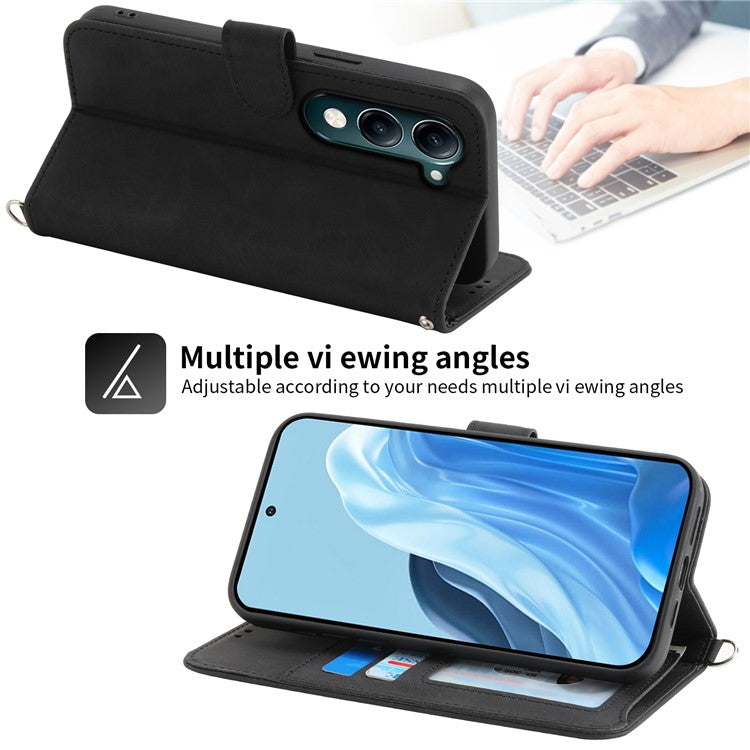 For vivo Y04 4G / Y29s 5G Case Flower Pattern PU Leather Wallet Phone Cover with Strap - Black