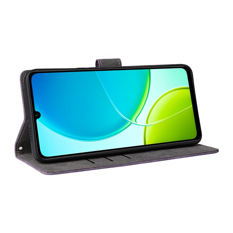 For vivo Y04 4G / Y29s 5G Case Wallet RFID Blocking PU Leather Cover Viewing Stand - Purple