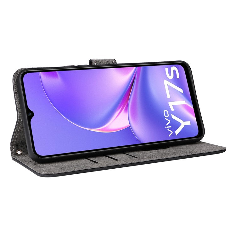For vivo Y17s 4G / Y33t (2023) V2317A Case Bump Proof RFID Blocking Phone Cover with Strap - Black