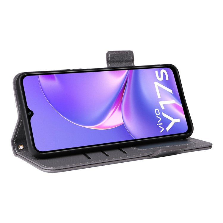 For vivo Y17s 4G / Y33t (2023) V2317A Case Mobile Phone Litchi Texture Leather Cover with Strap - Grey