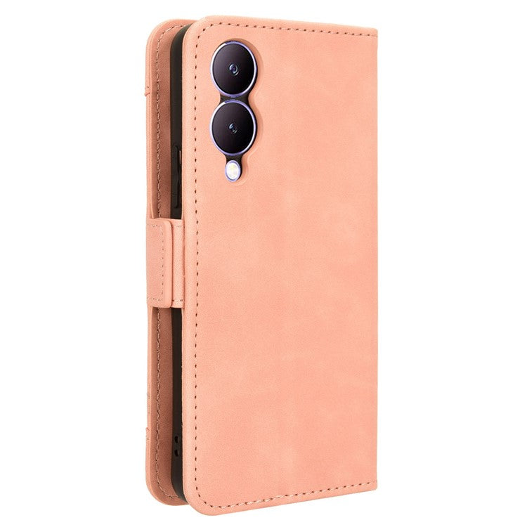 For vivo Y17s 4G / Y33t (2023) V2317A Case Wallet PU Leather Multiple Card Slots Phone Cover - Pink
