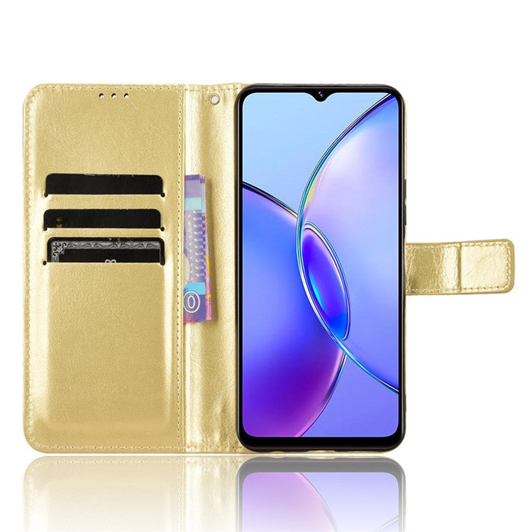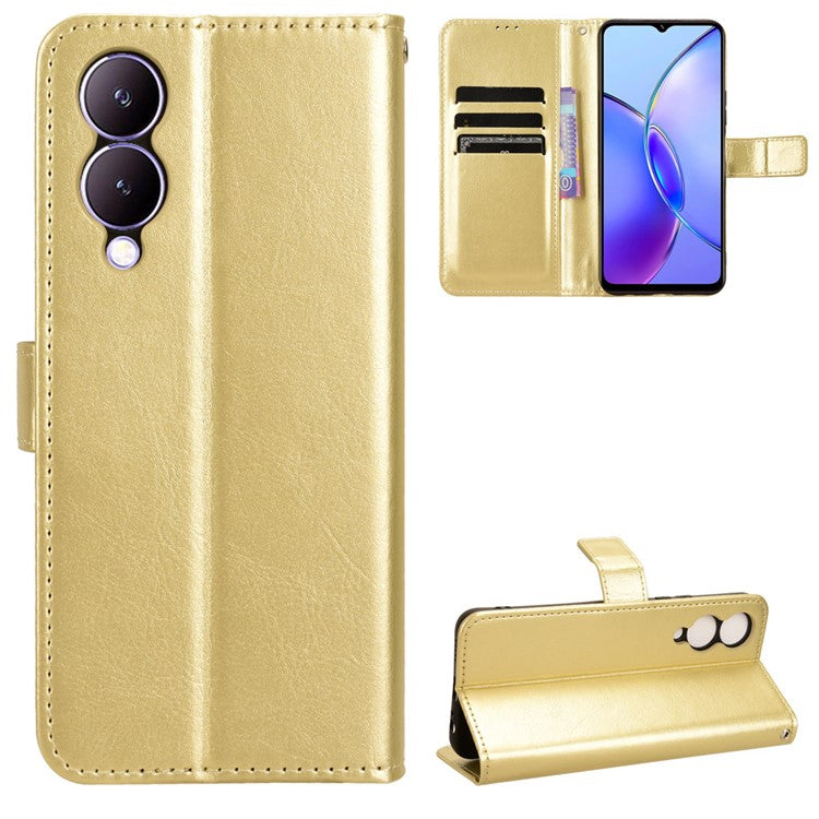 For vivo Y17s 4G / Y33t (2023) V2317A Case Wallet Stand Phone Leather Cover - Gold