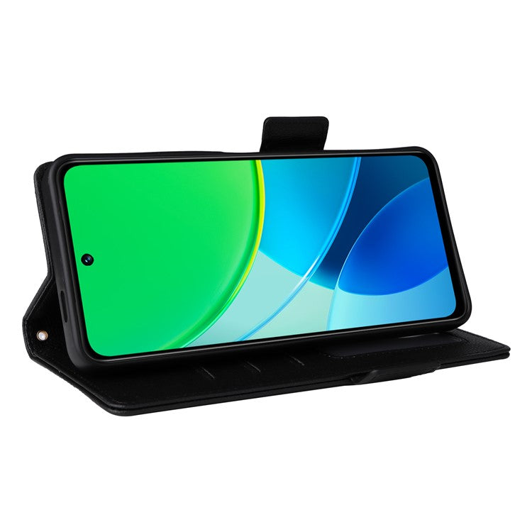 For vivo Y19s 4G Case Litchi Texture PU Leather Wallet Flip Phone Cover - Black
