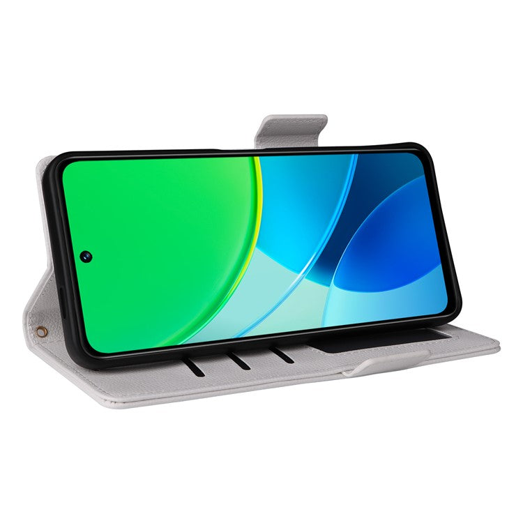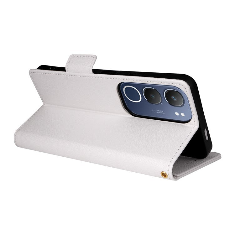 For vivo Y19s 4G Case Litchi Texture PU Leather Wallet Flip Phone Cover - White