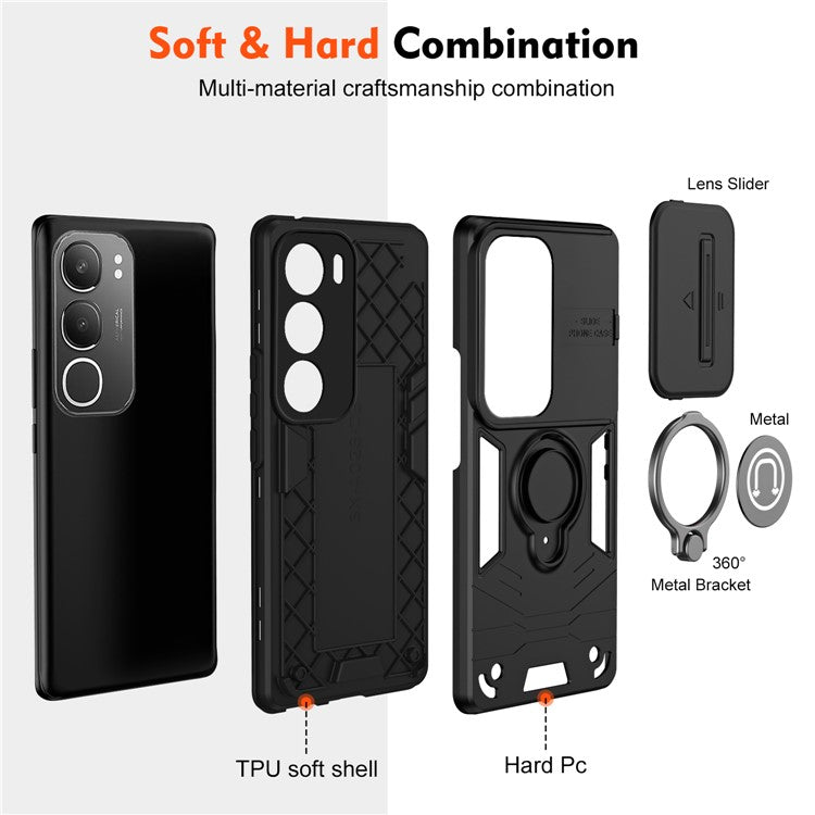 For vivo Y19s 4G Case Slide Camshield Kickstand PC+TPU Phone Cover - Black