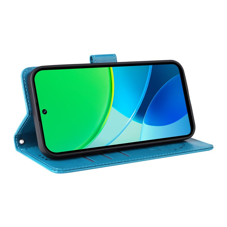 For vivo Y19s 4G Leather Case Butterfly Floral Imprint Wallet Stand Cover - Blue
