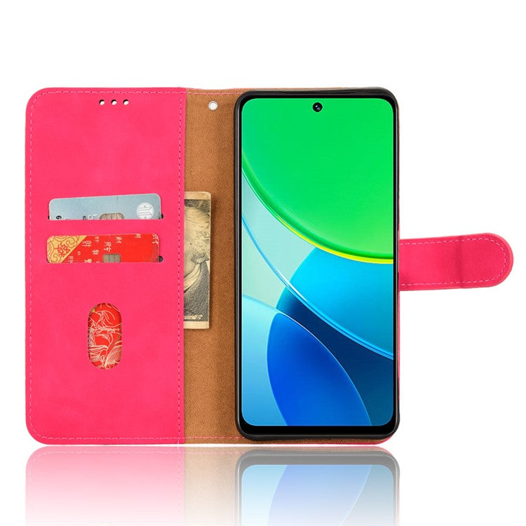 For vivo Y19s 4G Leather Case Skin-Feel Anti-Drop Wallet Flip Phone Cover - Rose