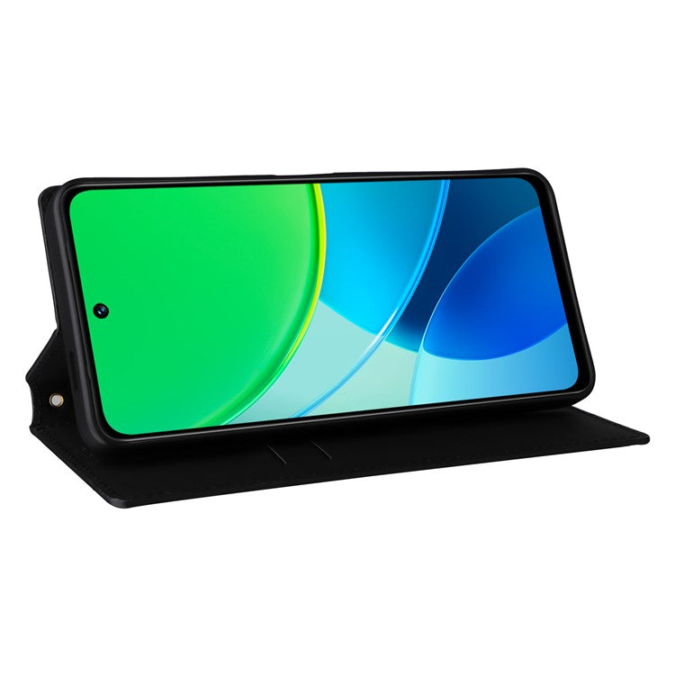 For vivo Y19s 4G Wallet Case Rhombus Imprinted Leather Phone Cover - Black