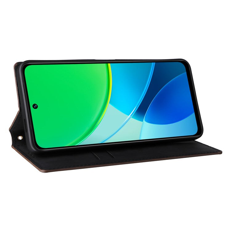 For vivo Y19s 4G Wallet Case Rhombus Imprinted Leather Phone Cover - Brown