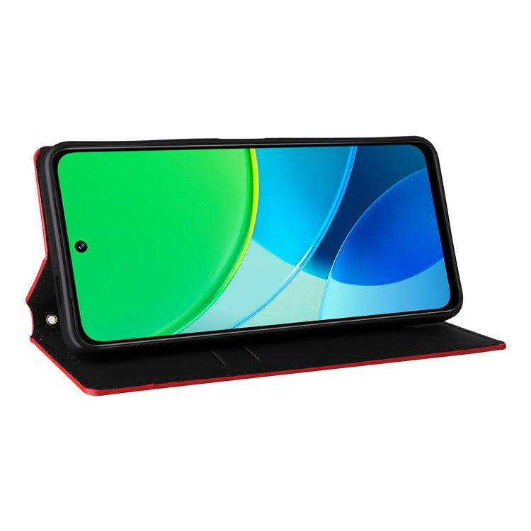 For vivo Y19s 4G Wallet Case Rhombus Imprinted Leather Phone Cover - Red