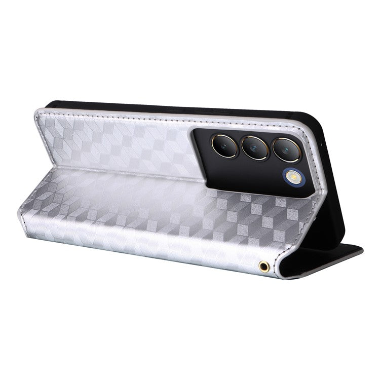For vivo Y200e 5G / V40 SE 5G / Y100 5G (Indonesia) / V30 Lite 4G / T3 5G / Y100 4G / V30 SE 5G Case Rhombus Pattern Smart Phone Cover - Silver