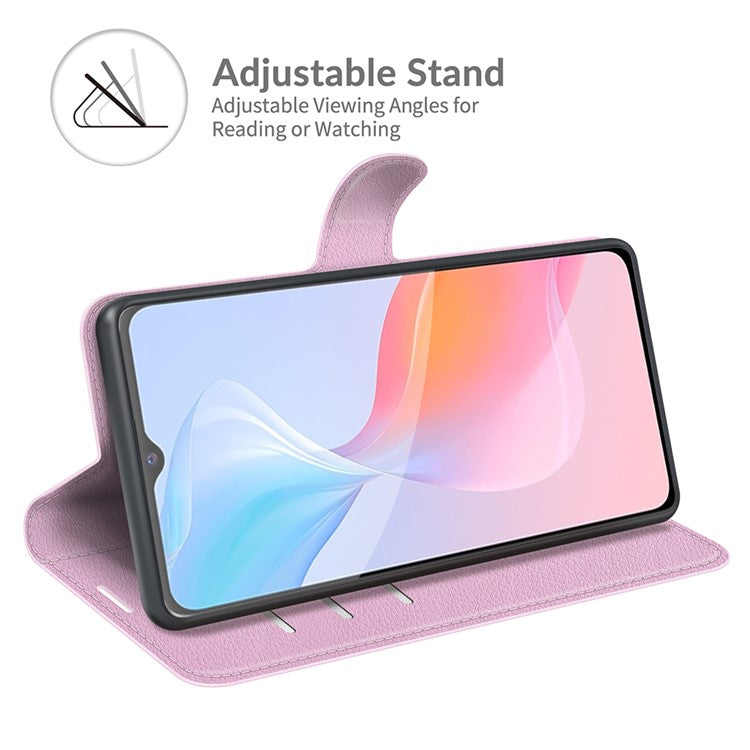 For vivo Y21 Practical Design Phone Case Wallet Stand Litchi Skin Flip Leather Phone Cover Shell - Purple - Pink