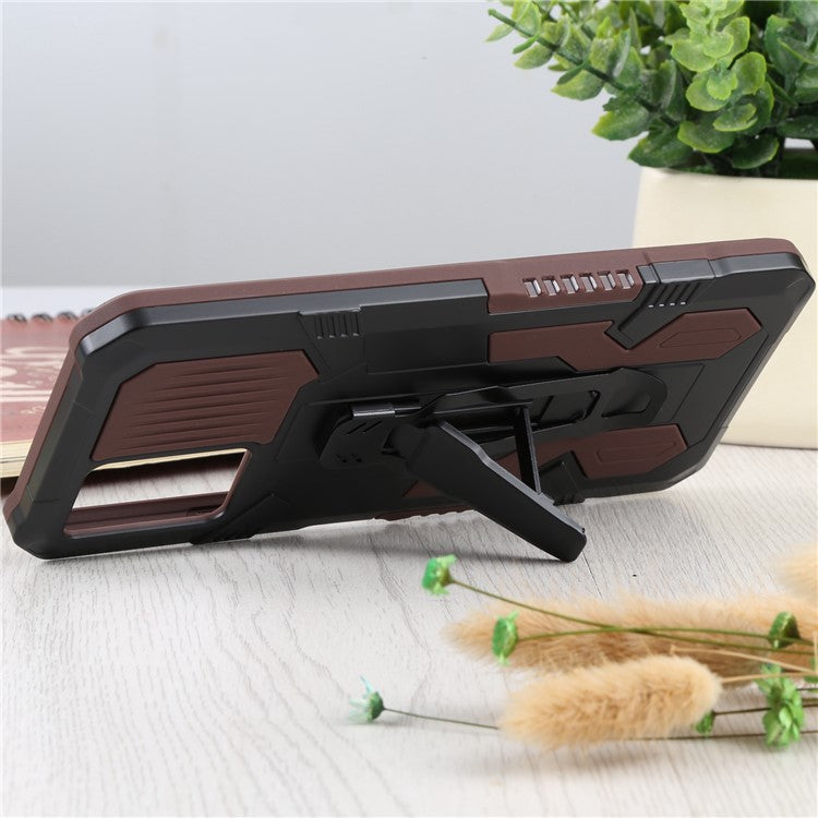 For vivo Y21s Anti-Scratch PC + TPU Phone Case with Built-in Magnetic-Absorbed Metal Plate Back Clip Kickstand Design Hybrid Cover - Coffee