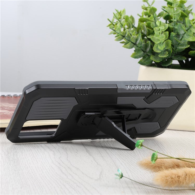 For vivo Y21s Anti-Scratch PC + TPU Phone Case with Built-in Magnetic-Absorbed Metal Plate Back Clip Kickstand Design Hybrid Cover - Grey