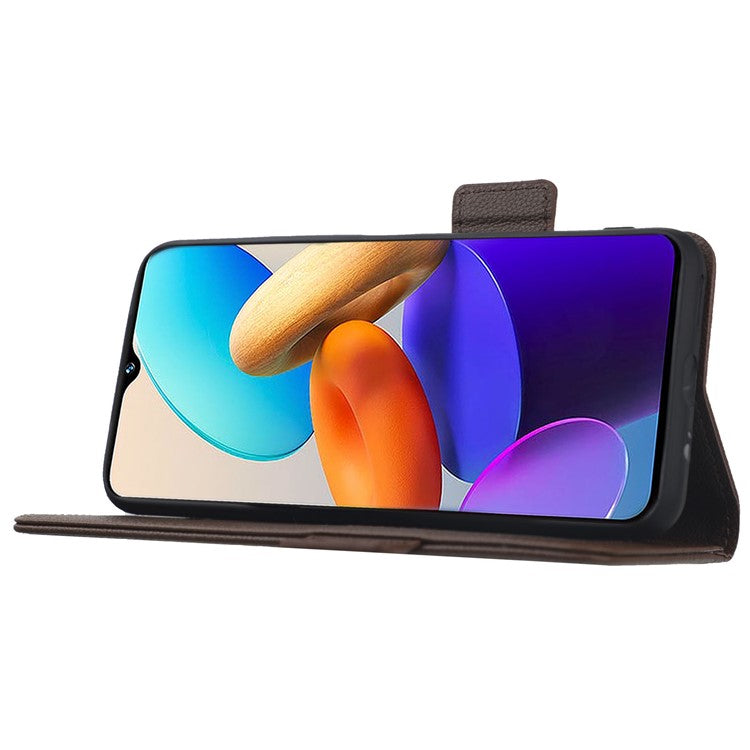 For vivo Y22 4G / Y22s 4G / Y35 4G (2022) Magnetic Phone Cover Litchi Texture Wallet Adjustable Stand PU Leather Flip Phone Case with Strap - Brown
