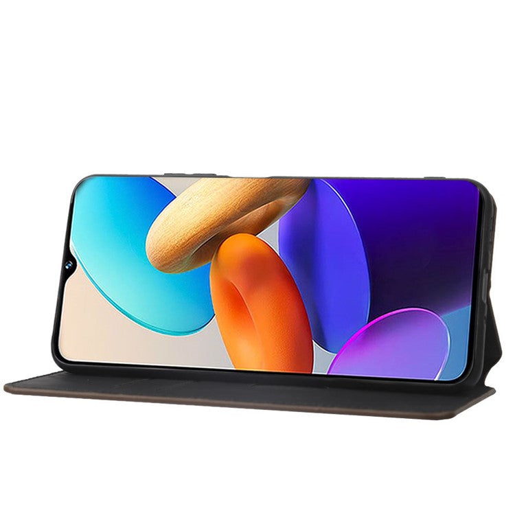 For vivo Y22 4G / Y22s 4G / Y35 4G (2022) Shock-absorbing Stand Wallet Phone Case, Imprinted Rhombus Pattern PU Leather Magnetic Auto-absorbed Folio Flip Cover - Brown