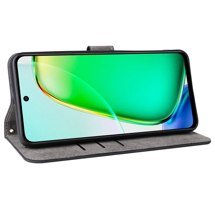 For vivo Y28 4G Case RFID Blocking Leather Phone Cover Horizontal Viewing Stand - Black