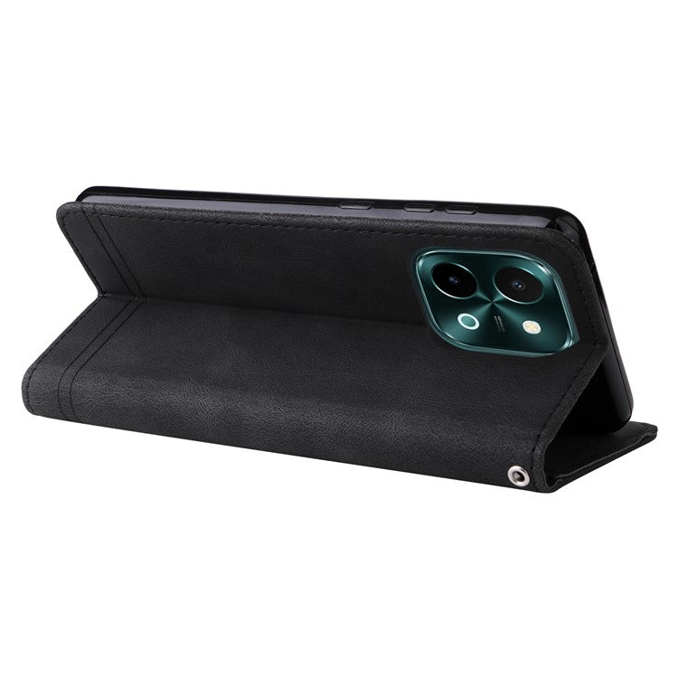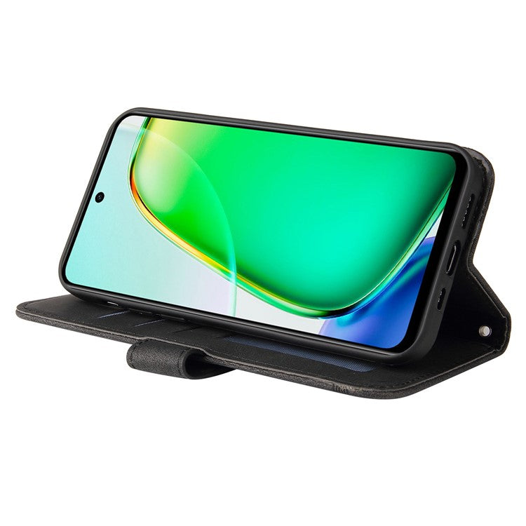 For vivo Y28 4G / iQOO Z9x 5G Case Leather Wallet Phone Cover Skin Touch Feeling - Black