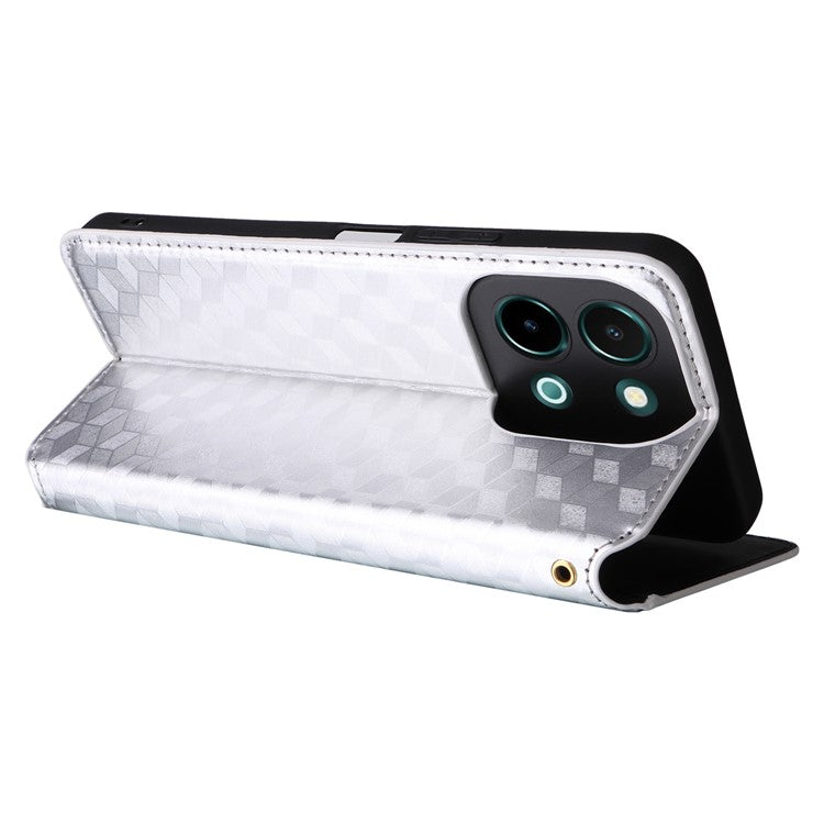 For vivo Y28 4G Magnetic Absorption Case Rhombus Leather Phone Cover - Silver