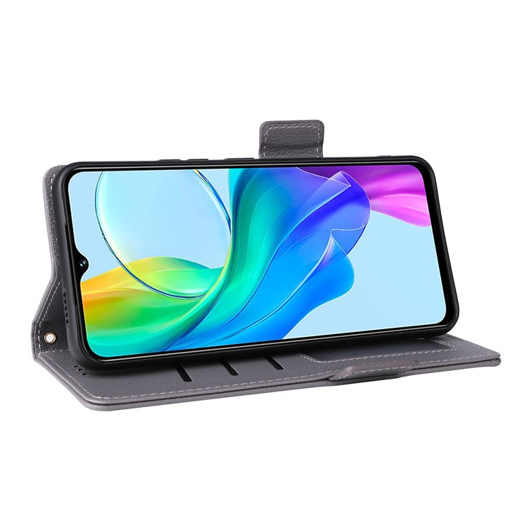 For vivo Y28s 5G / T3 Lite 5G / Y03 / Y18 4G / Y18e 4G Case PU Leather Wallet Wrist Strap Magnetic Closure Phone Cover - Grey