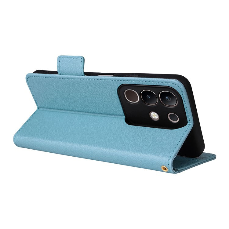 For vivo Y29 4G / T4x 5G Case Wallet Flip Litchi Texture PU Leather Phone Cover - Baby Blue