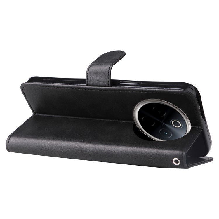 For vivo Y300 Pro 5G Case Zipper Wallet Calf Texture PU Leather Phone Cover - Black