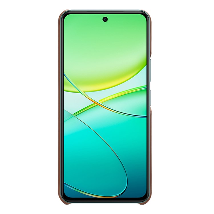 For vivo Y38 5G Cases Calf Texture Leather Hard PC Phone Cover - Brown