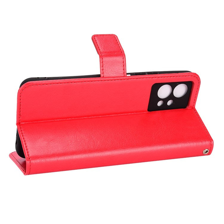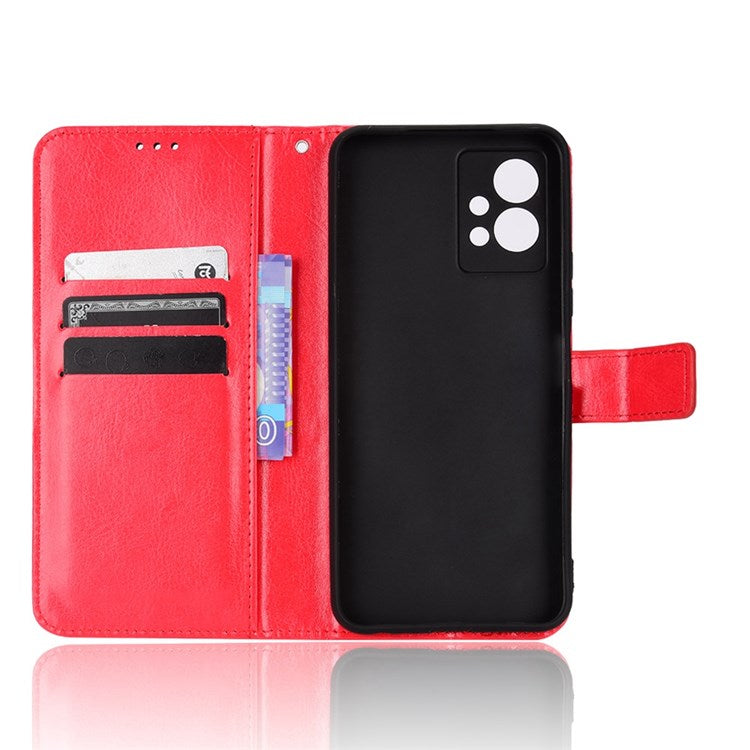 For vivo Y55 5G/Y75 5G/T1 5G PU Leather Folio Flip Folding Phone Cover Crazy Horse Texture Stand Wallet Case Carrying Pouch with Strap - Red