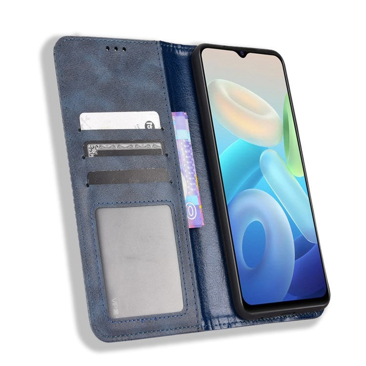 For vivo Y55 5G/Y75 5G/T1 5G PU Leather Retro Cover Mosaic Imprinted Stand Magnetic Adsorption Flip Wallet Case - Blue