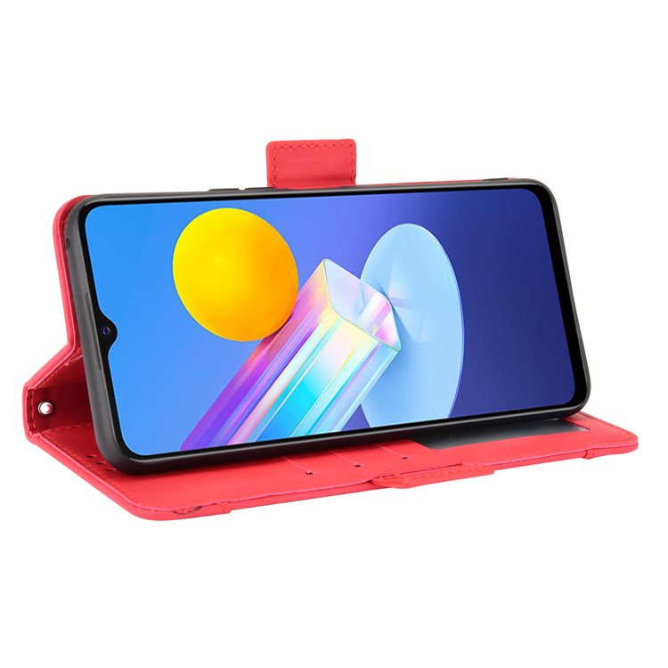For vivo Y72 5G/iQOO Z3 5G Protective Leather Stand Case with Multiple Card Slots - Red
