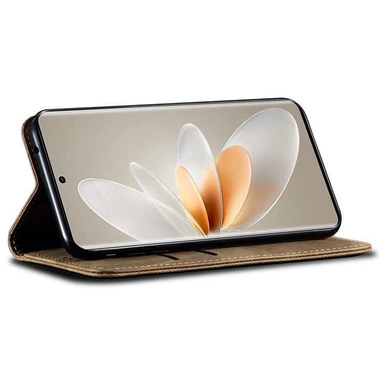 Jeans Cloth Texture Phone Case for vivo S16e 5G , PU Leather Wallet Stand Phone Cover - Khaki