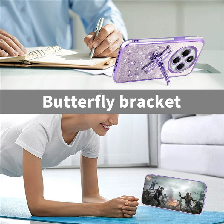 KADEM For vivo Y300 Pro 5G Case Dragonfly Kickstand TPU Flowers Glitter Phone Cover - Blue