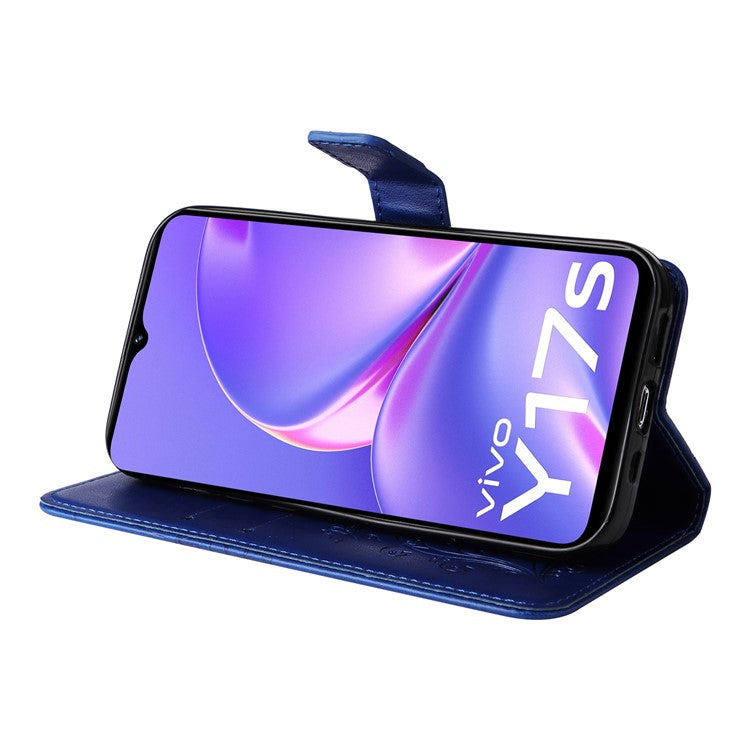 KT Imprinting Flower Series-2 For vivo Y17s 4G Leather Case Wallet Cover Butterfly Pattern - Blue