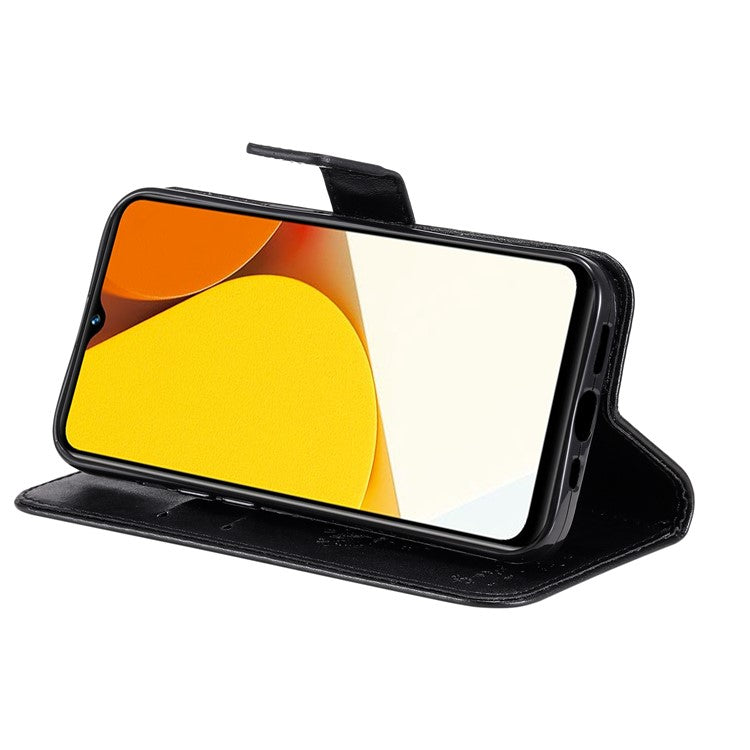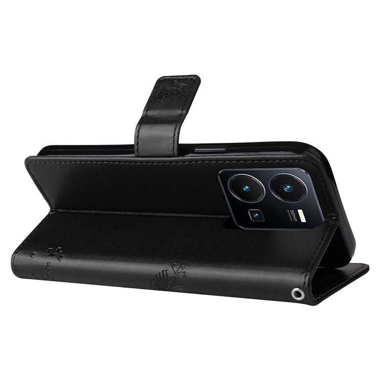 KT Imprinting Flower Series-3 for vivo Y35 / Y22s 4G / Y22 4G Protective Flip Phone Case Imprinted Cat Tree Pattern Wallet Stand Anti-wear PU Leather Phone Cover - Black