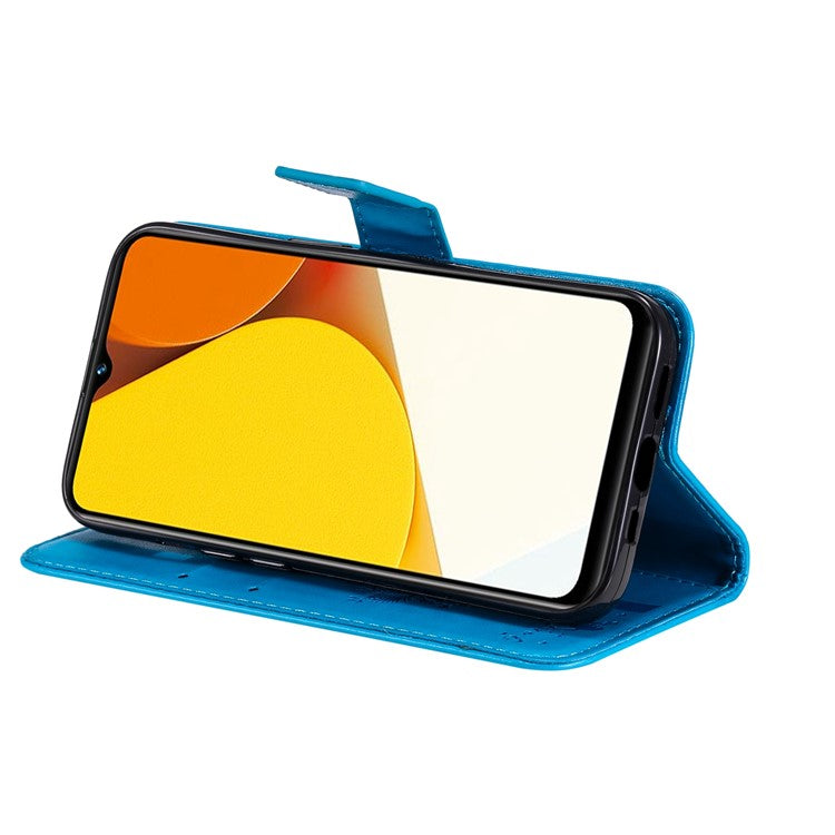 KT Imprinting Flower Series-3 for vivo Y35 / Y22s 4G / Y22 4G Protective Flip Phone Case Imprinted Cat Tree Pattern Wallet Stand Anti-wear PU Leather Phone Cover - Blue