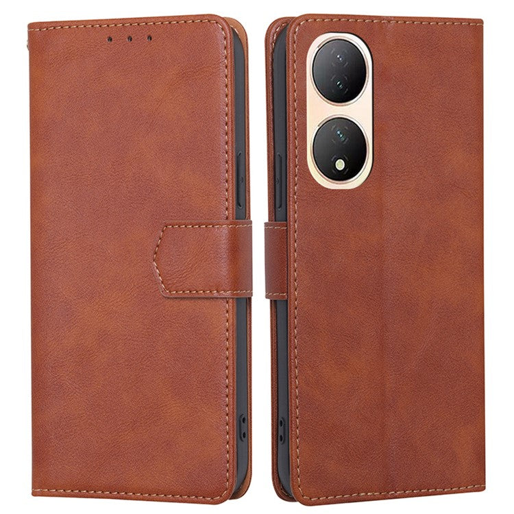 Phone Case for vivo Y100 5G Cowhide Texture PU Leather Flip Cover RFID Blocking Wallet Phone Shell - Brown