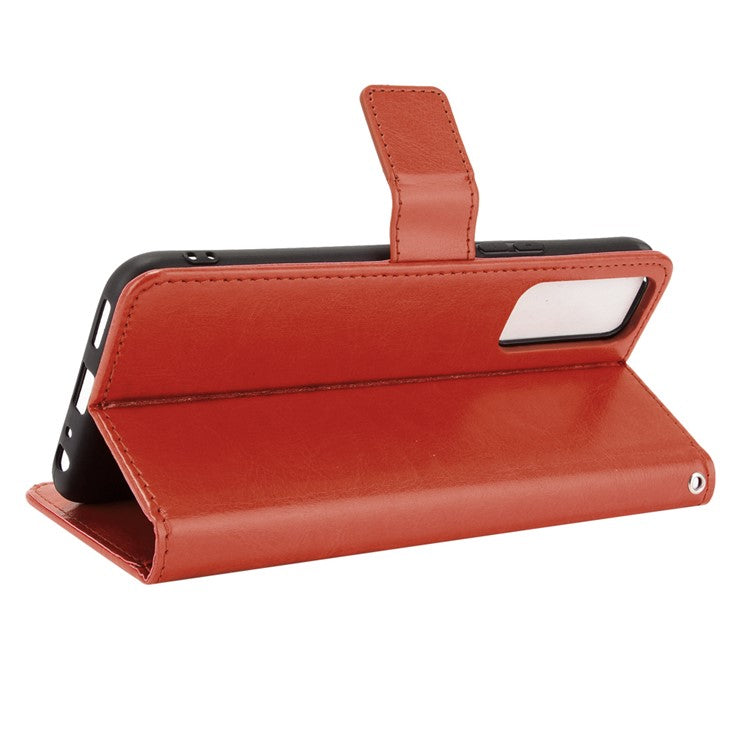 PU Leather Case Wallet with Stand Design Crazy Horse Texture Shell for vivo Y72 5G/iQOO Z3 - Brown