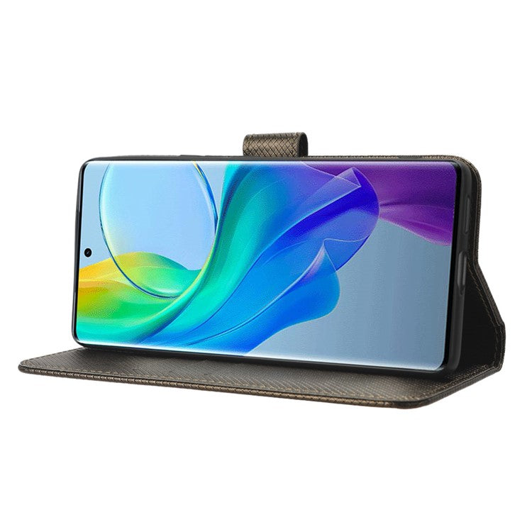 PU Leather Phone Cover for vivo Y78+ 5G / Y78 5G / V29 Lite 5G Shockproof Diamond Texture Case Stand Wallet Flip Shell - Brown