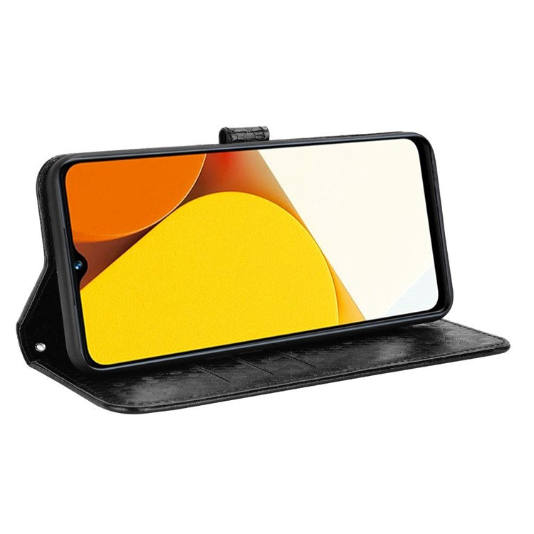 Shockproof Phone Case For vivo Y35 4G (2022), Flip Wallet Stand Dot Pattern Imprinted PU Leather Magnetic Clasp Phone Cover with Strap - Black