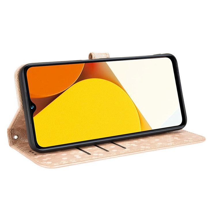 Shockproof Phone Case For vivo Y35 4G (2022), Flip Wallet Stand Dot Pattern Imprinted PU Leather Magnetic Clasp Phone Cover with Strap - Rose Gold