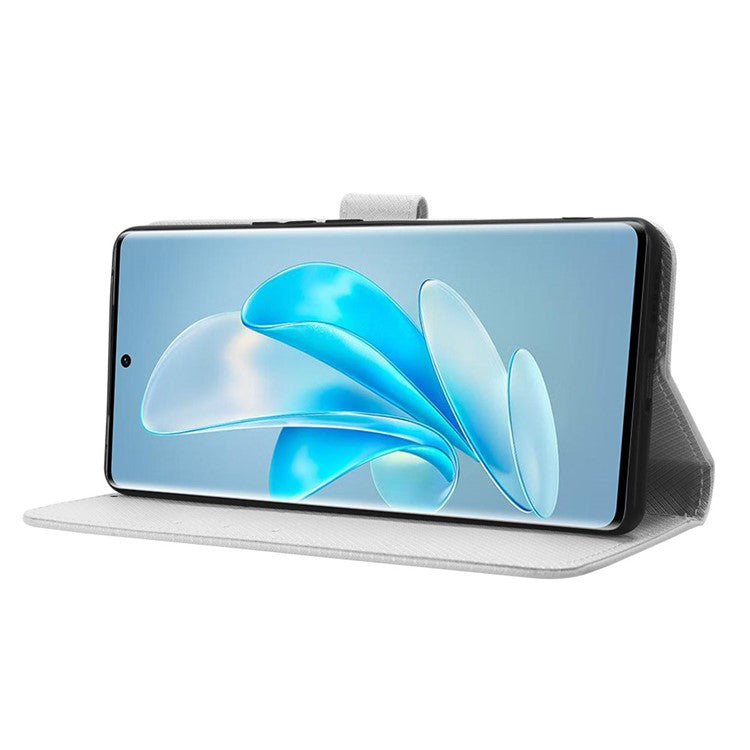 Shockproof PU Leather Phone Case for vivo S17e 5G , Stand Wallet Diamond Texture Phone Cover - White