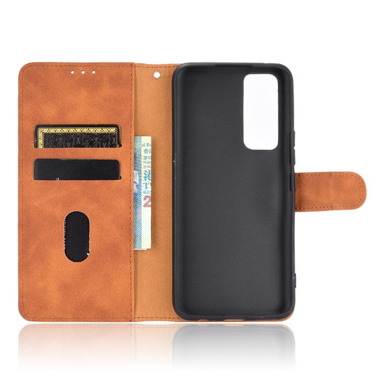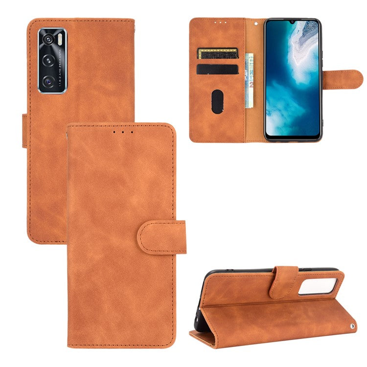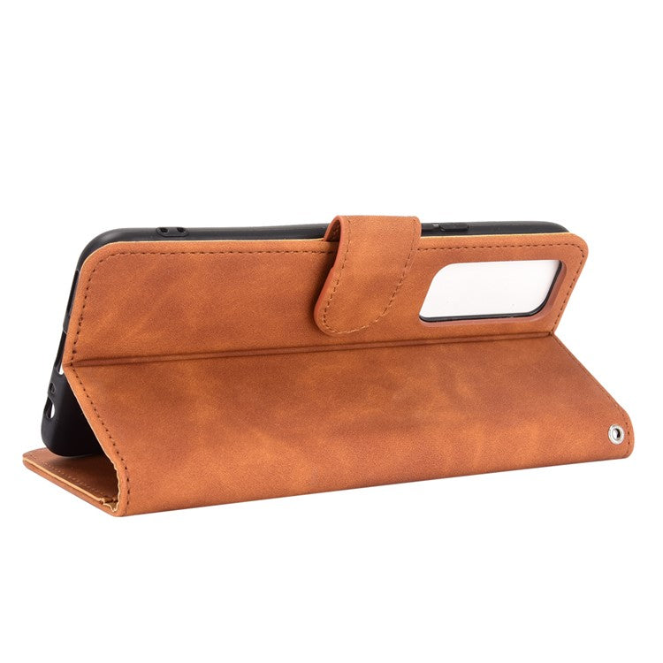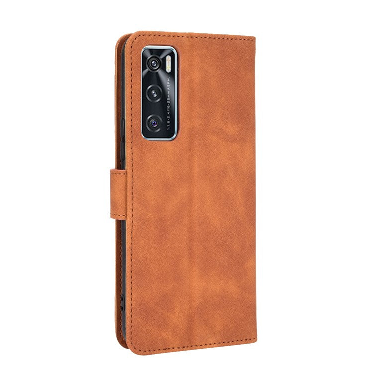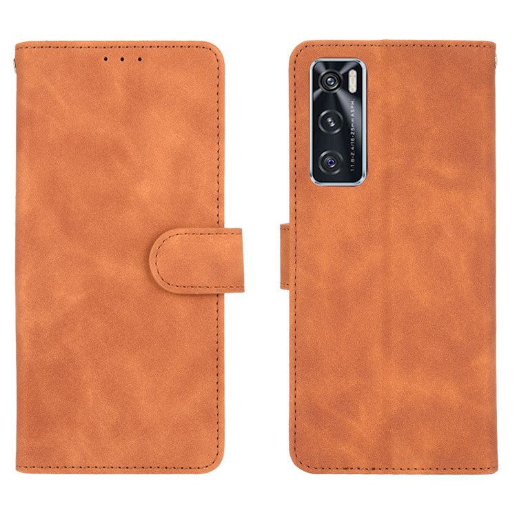 Skin-Feeling PU Leather Flip Phone Wallet Case with Wrist Strap for Vivo V20 SE/Y70 2020 - Brown