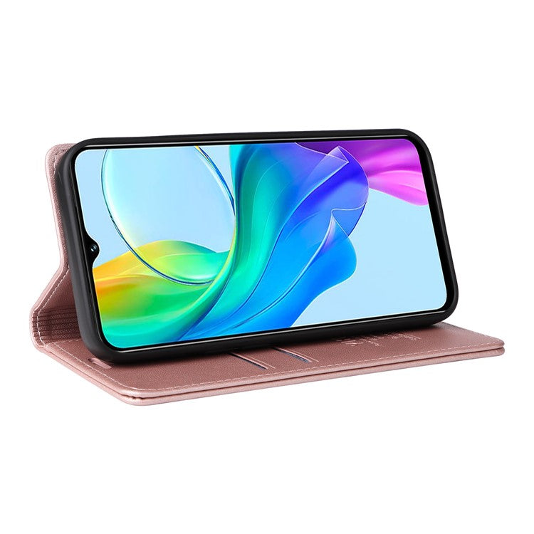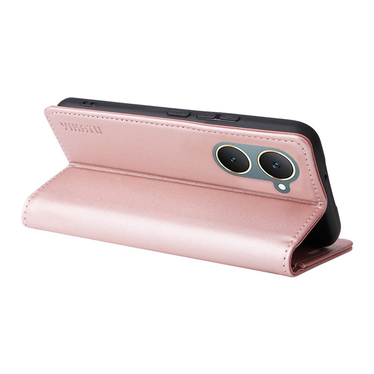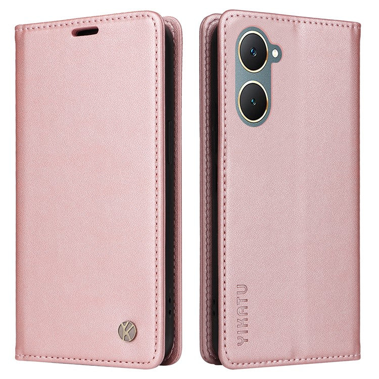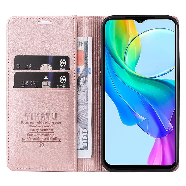 YIKATU YK-001 For vivo Y03 Wallet Stand Case Anti-Drop PU Leather Phone Cover - Rose Gold