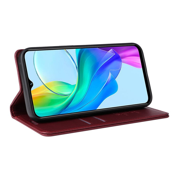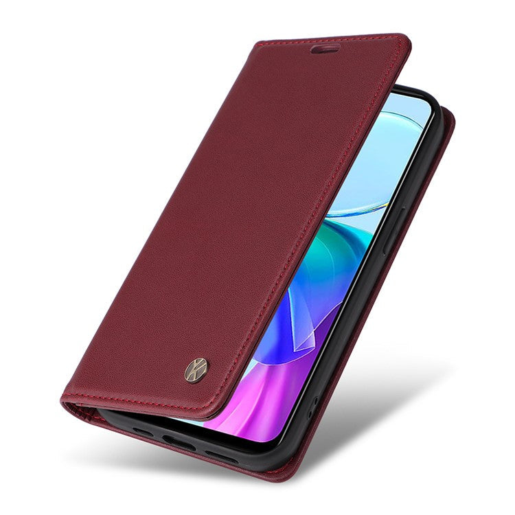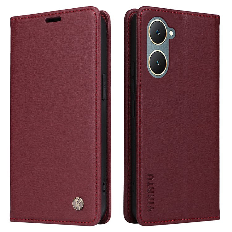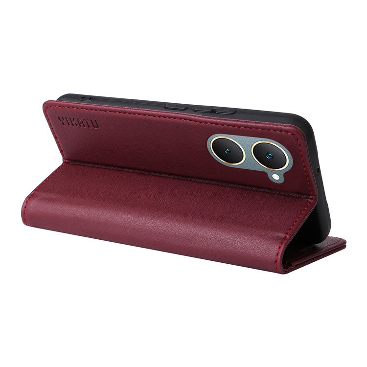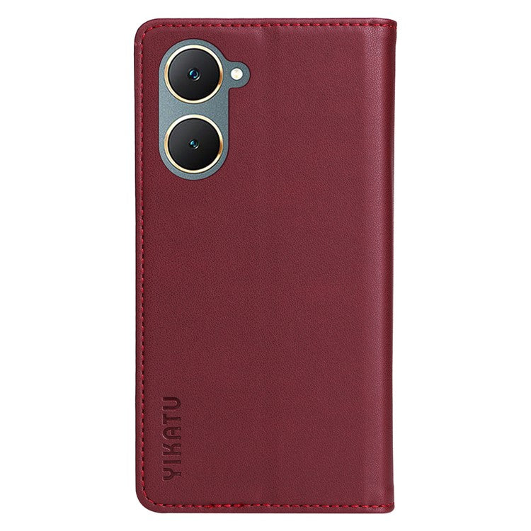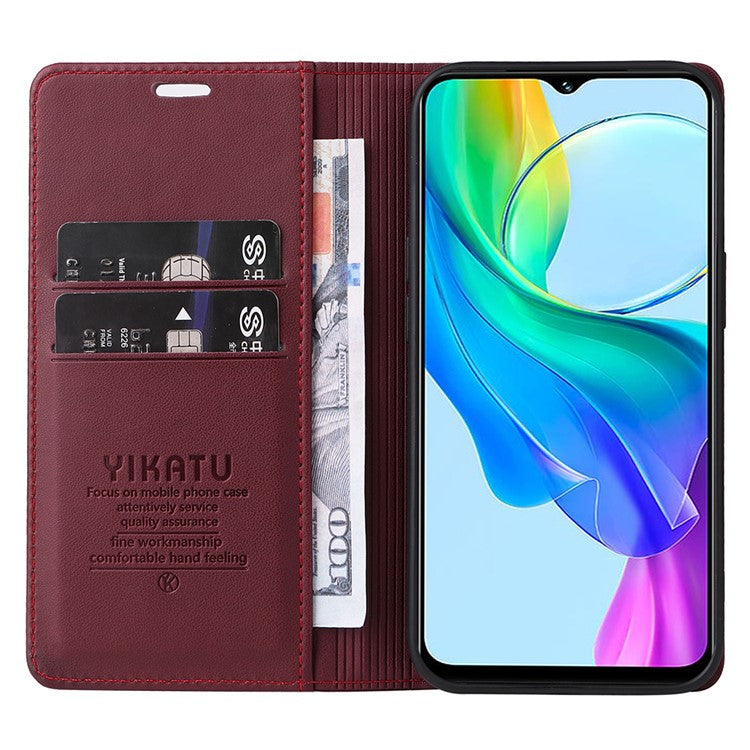 YIKATU YK-001 For vivo Y03 Wallet Stand Case Anti-Drop PU Leather Phone Cover - Wine Red