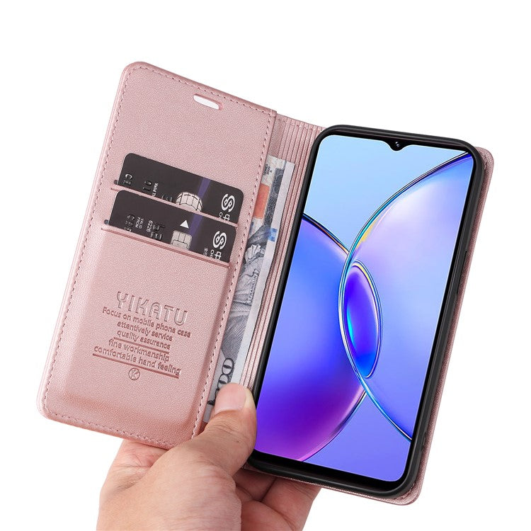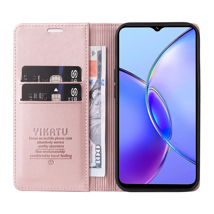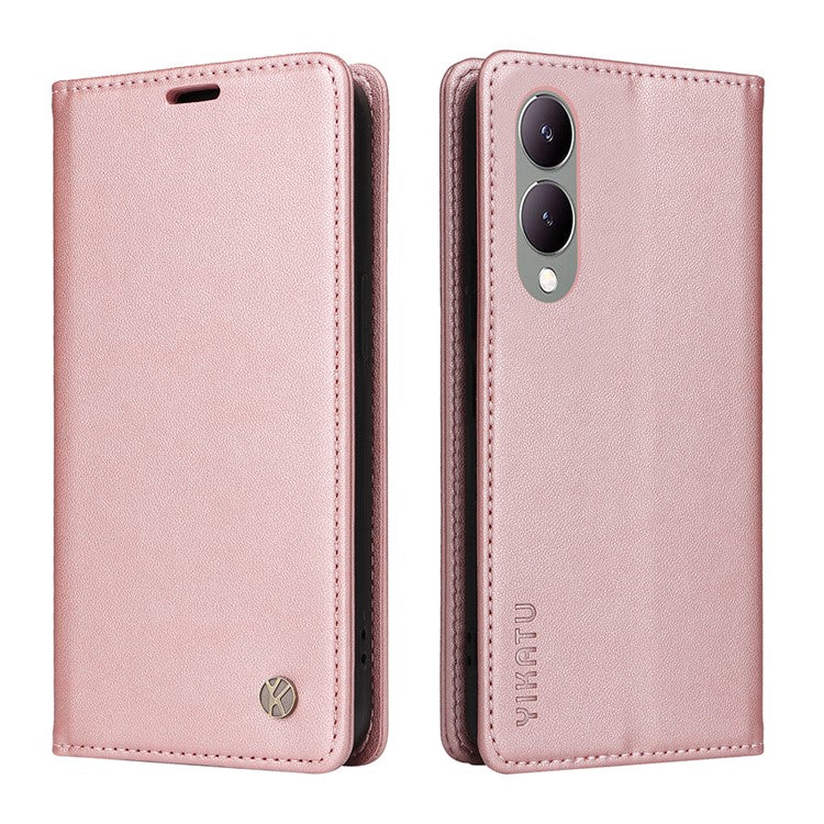 YIKATU YK-001 For vivo Y17s 4G Magnetic Case Leather Wallet Card Slots Phone Cover - Rose Gold