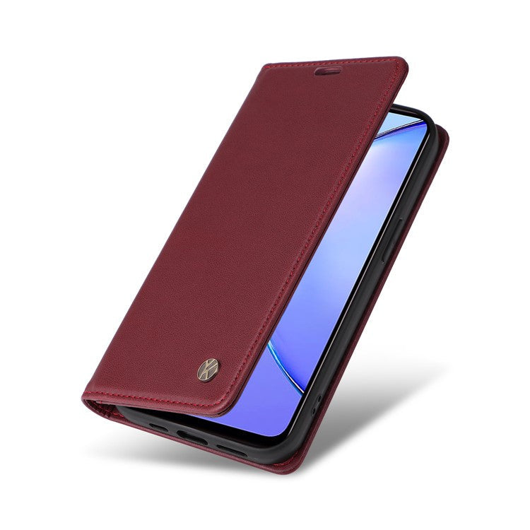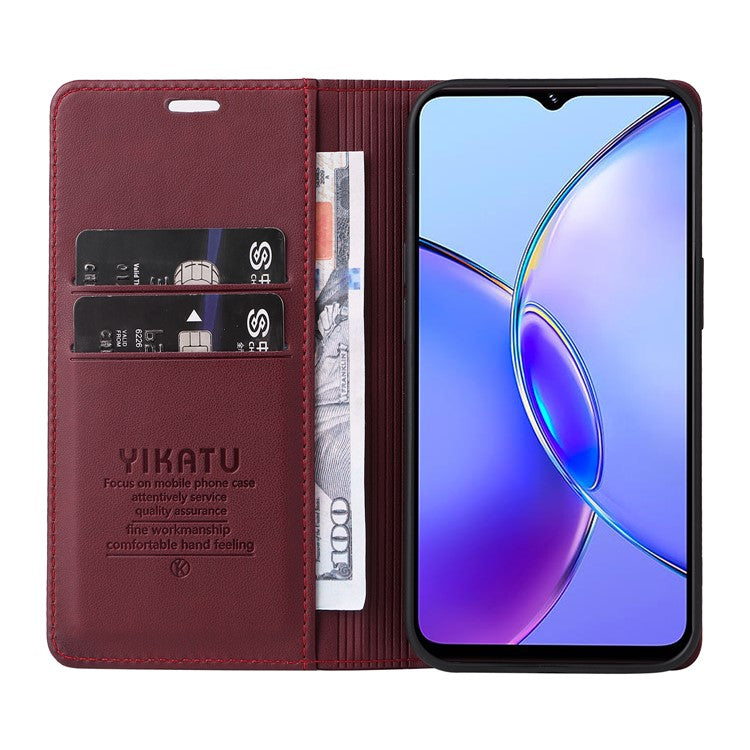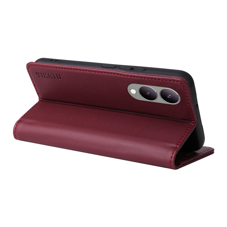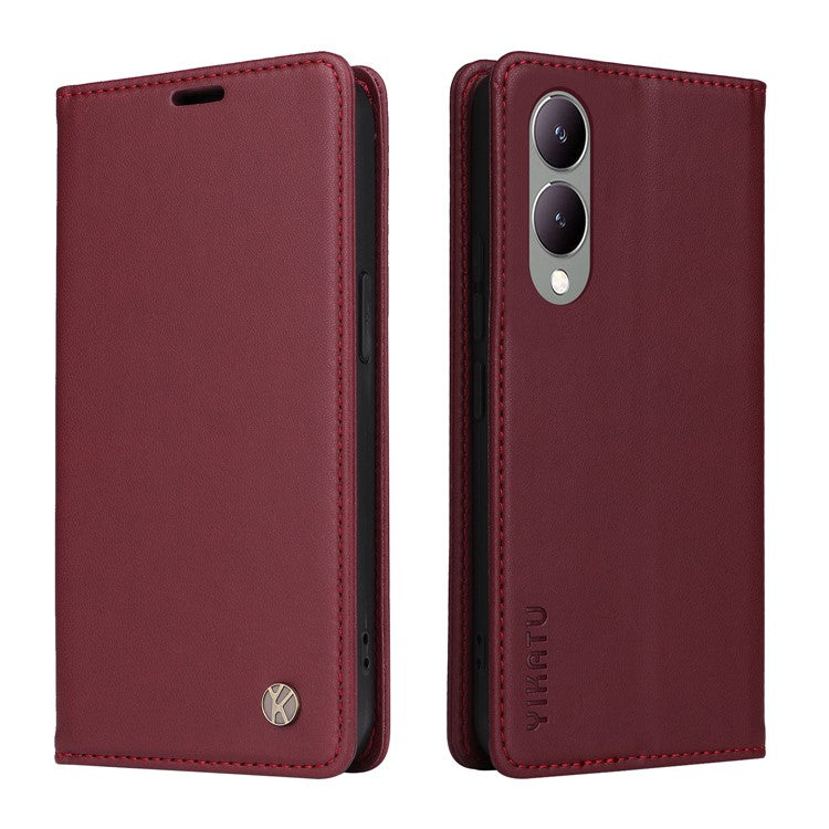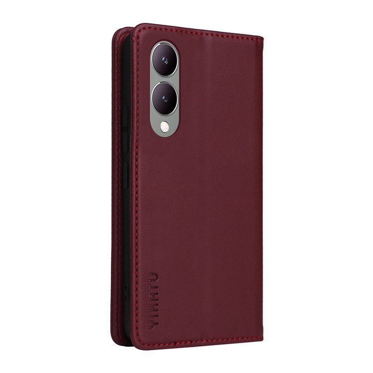 YIKATU YK-001 For vivo Y17s 4G Magnetic Case Leather Wallet Card Slots Phone Cover - Wine Red